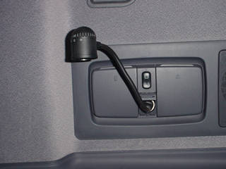 さて上の画像のスケルトンの物体はゲーム機用の入力切替え装置です。モニターには入力を自動で切り替える機能が無いので、ギアをバックに入れるとバックアイモニターに通電して画像が送られてきます。その信号をキャッチして入力を切り替えてくれる優れもの。また、4系統の入力があるのでハンディーカムなどの入力も入れれます。青い部分を押してもマニュアルで切り替えができます。ゲーム機等を売っているところで2,500円程度でした。9Vなんですが無理やりつないでいます。