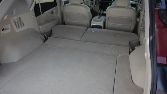 ↑ 日産新型「ムラーノ」ラゲッジ画像その2、後席を倒すと広くなりフラットで使いやすそうだ、フラットにするために底上げしているのだろう、個人的にはこの日産の内装色はあまり好きではない、使っているうちに擦れてうす汚く汚れてくるからだ、画像はネット上から拝借
